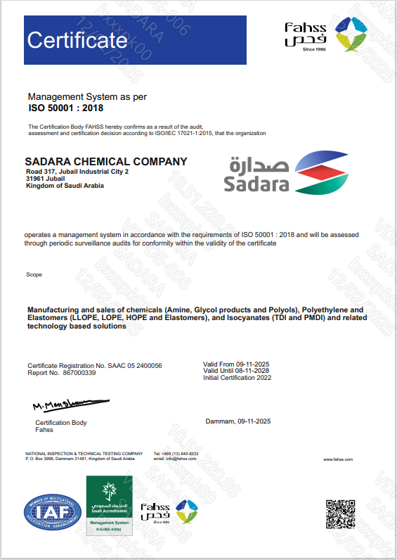 Sadara' s environmental management system (EMS) is designed and implemented in alignment with Responsible Care® (RC) 14001:2015 elements. Specifically, Sadara’s Operation Discipline Management System (ODMS) embodies the Responsible Care theme of “Plan-Do-Check-Act” philosophy.